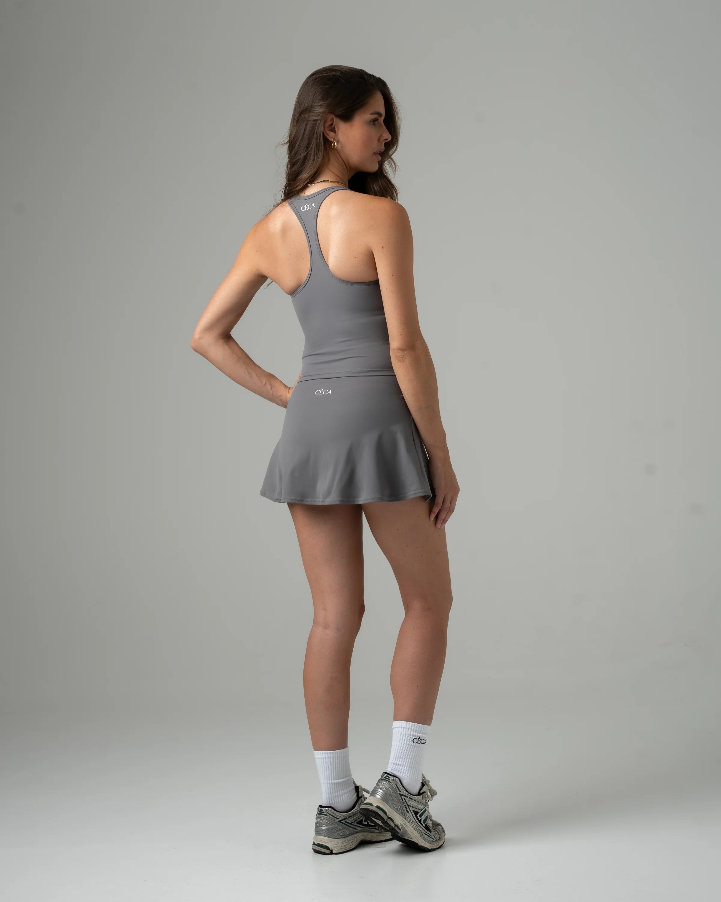 The Béla Set is a court-ready co-ord made to move with you. It features a sleek skirt with a subtle side split and built-in shorts, paired with a square-neck top that includes a supportive built-in bra. Crafted from breathable, stretchy fabric, the Béla Set is designed to keep you cool, confident, and free to move on or off the court.