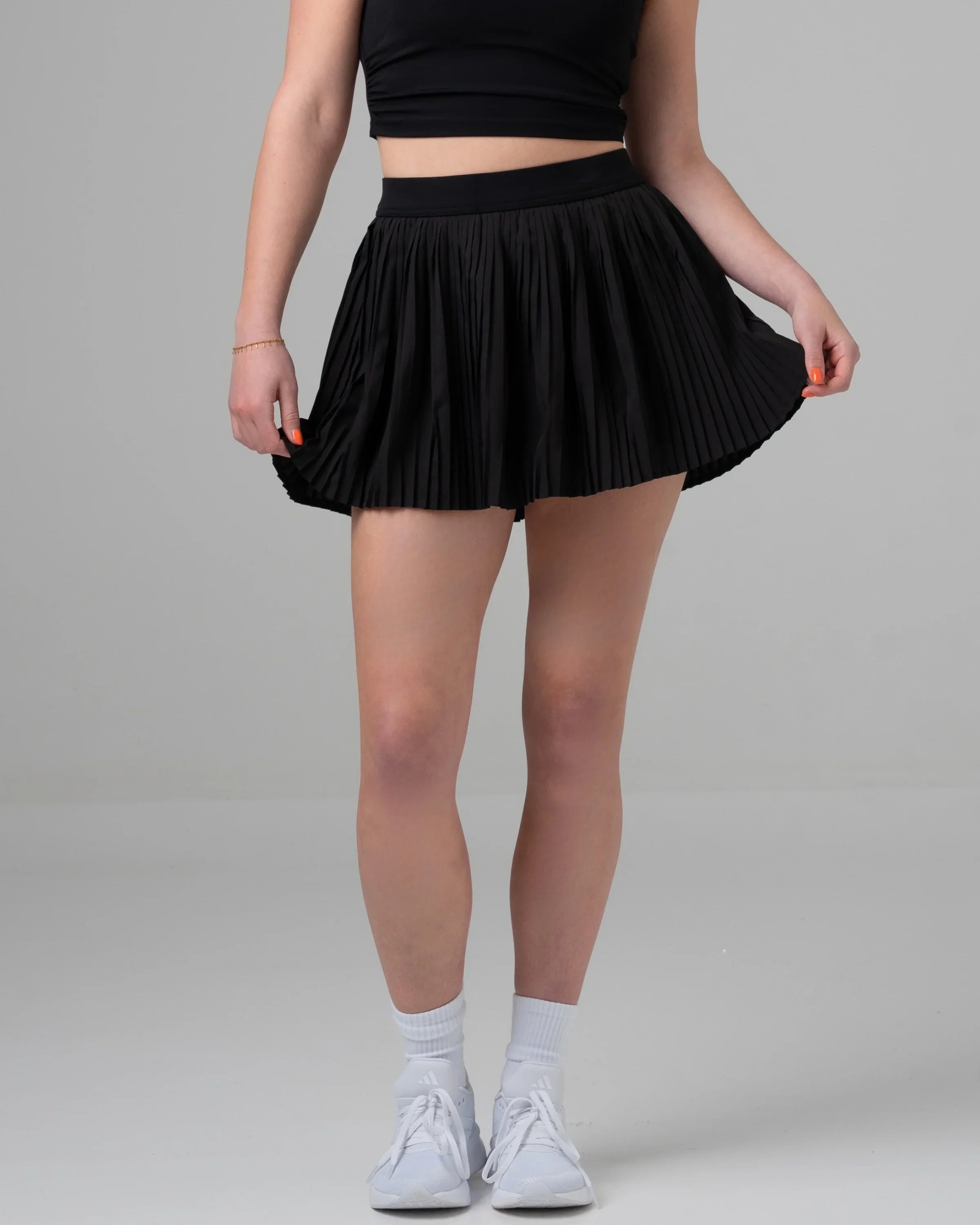 The Auréa skirt brings serious style with a playful, athletic twist. Featuring a flattering pleated design and built-in shorts with pockets, it combines movement-friendly comfort with a classic tennis vibe. Made from lightweight, breathable fabric, this skirt keeps you cool and confident whether you're on the court or out and about.
